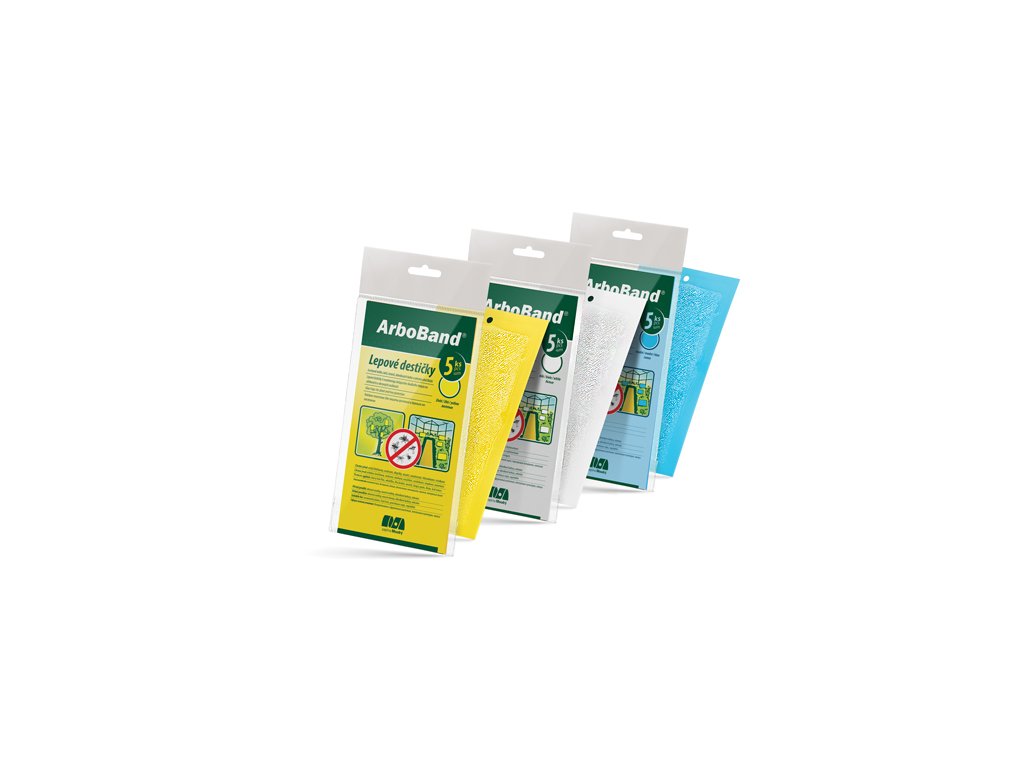 Sada 5 ks desek slepených navzájem k sobě. Lepové desky se věší do blízkosti rostlin nebo přímo na rostliny a stromy. Použití je možné jak v interiérech a sklenících, tak i v exteriérech. Lapač přitahuje škůdce svou barvou. Nabízíme ve třech barevných provedeních – žlutá, modrá, bílá.