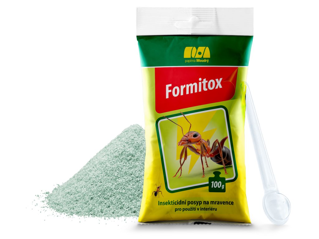 Formitox je účinný přípravek proti mravencům všeho druhu, kteří často pronikají zvenku do vnitřních prostor budov. Po požití návnady hmyz hyne.