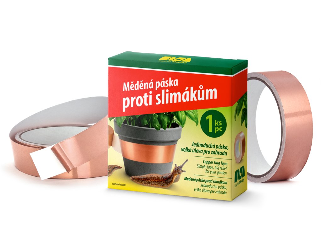 Samolepicí páska z mědi o délce 4 m a šířce 2,5 cm vytváří ochrannou bariéru kolem květináčů, záhonů, skleníků, stolů, plotů i dalších míst, která chcete uchránit před škůdci.