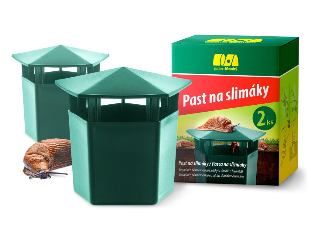 Past je určená k odchytu slimáků, plzáků i hlemýžďů, kteří ničí okrasné i hospodářské zahrady či políčka. Lapač se skládá z plastové nádobky a snadno odnímatelného víka. Aby nástraha účinkovala, stačí nádobku naplnit pivem nebo droždím s teplou vodou.