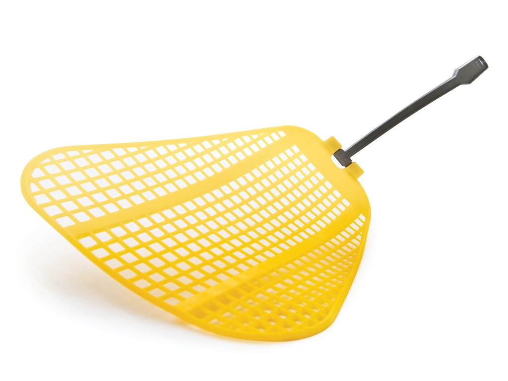 Plastová plácačka na hmyz v 5 barevných variantách - žluté, červené, zelené, modré a černé.